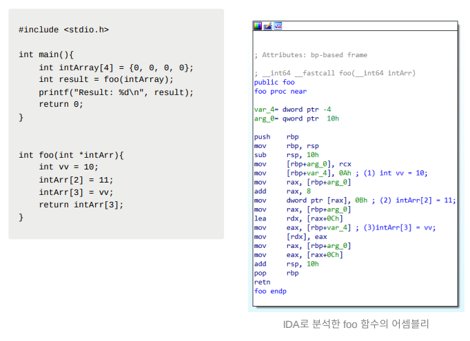 실행파일에서는 소스코드에 있던 변수 정보는 사라지고 저수준의 메모리 접근 연산으로 단순화 ∴ 실제 데이터 구조를 찾을 수 없음