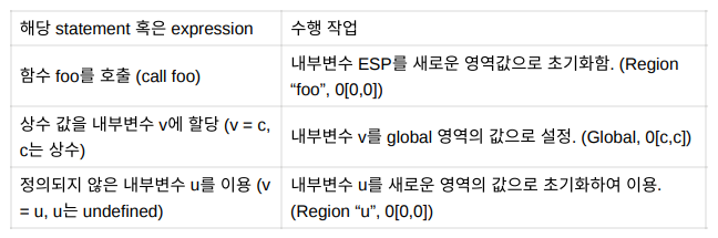 VSA(Value-Set Analysis): 프로그램을 구성하는 각 영역(region)마다 SI로 표현되는 값을 하나식 가지는 value set을 구성하여 프로그램에서 사용하는 변수드을 찾아내는 작업 수행